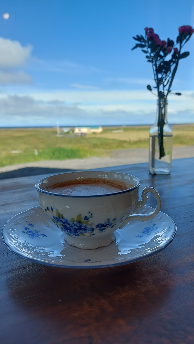 As you step into Kaffi Gola, you're greeted by a cozy atmosphere that immediately feels like home. The interior is a harmonious blend of modern flair and rustic charm, making it the ideal spot to relax and recharge, whether you’re on your way to explore local lighthouses or just taking a moment to soak up the beauty of the surroundings.